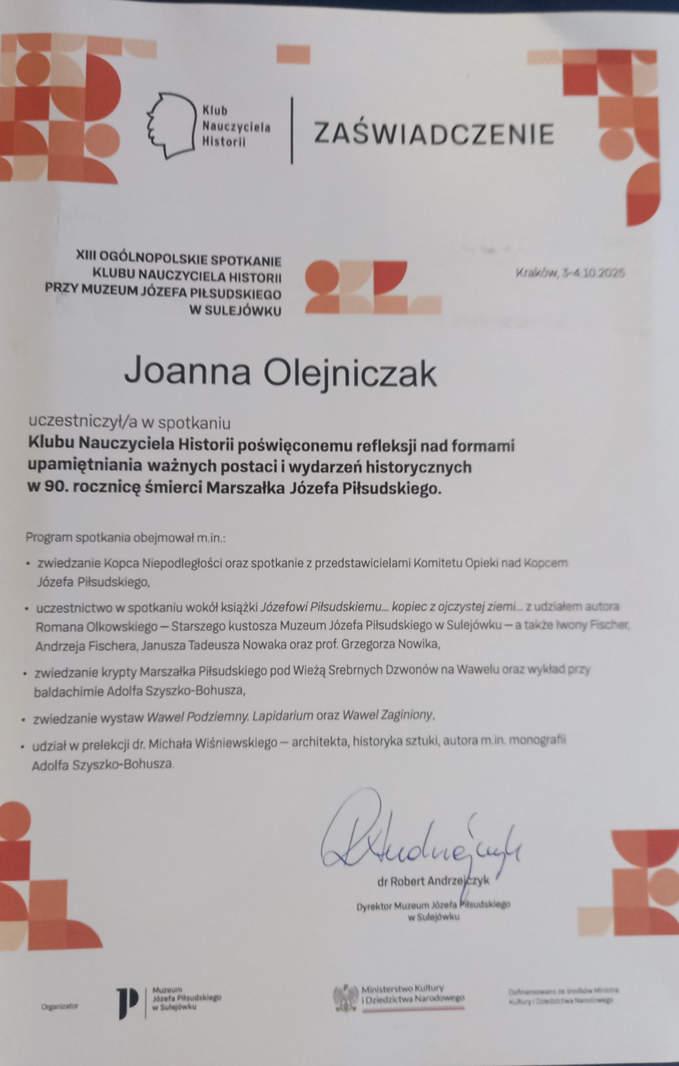 W tym roku minęła 90-ta rocznica śmierci Józefa Piłsudskiego i z tej okazji w Krakowie odbył się XIII Zjazd Nauczycieli Historii. Był on poświęcony refleksji nad formami podtrzymywania pamięci narodowej, związanej z ważnymi postaciami i wydarzeniami historycznymi. Program spotkania obejmował zwiedzanie Kopca Józefa Piłsudskiego, udział w wykładach i oddaniu hołdu Marszałkowi w krypcie pod Wieżą Srebrnych Dzwonów.