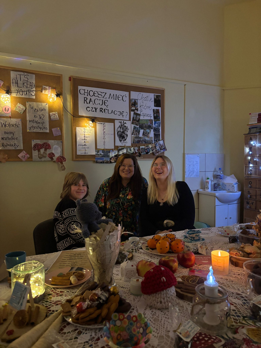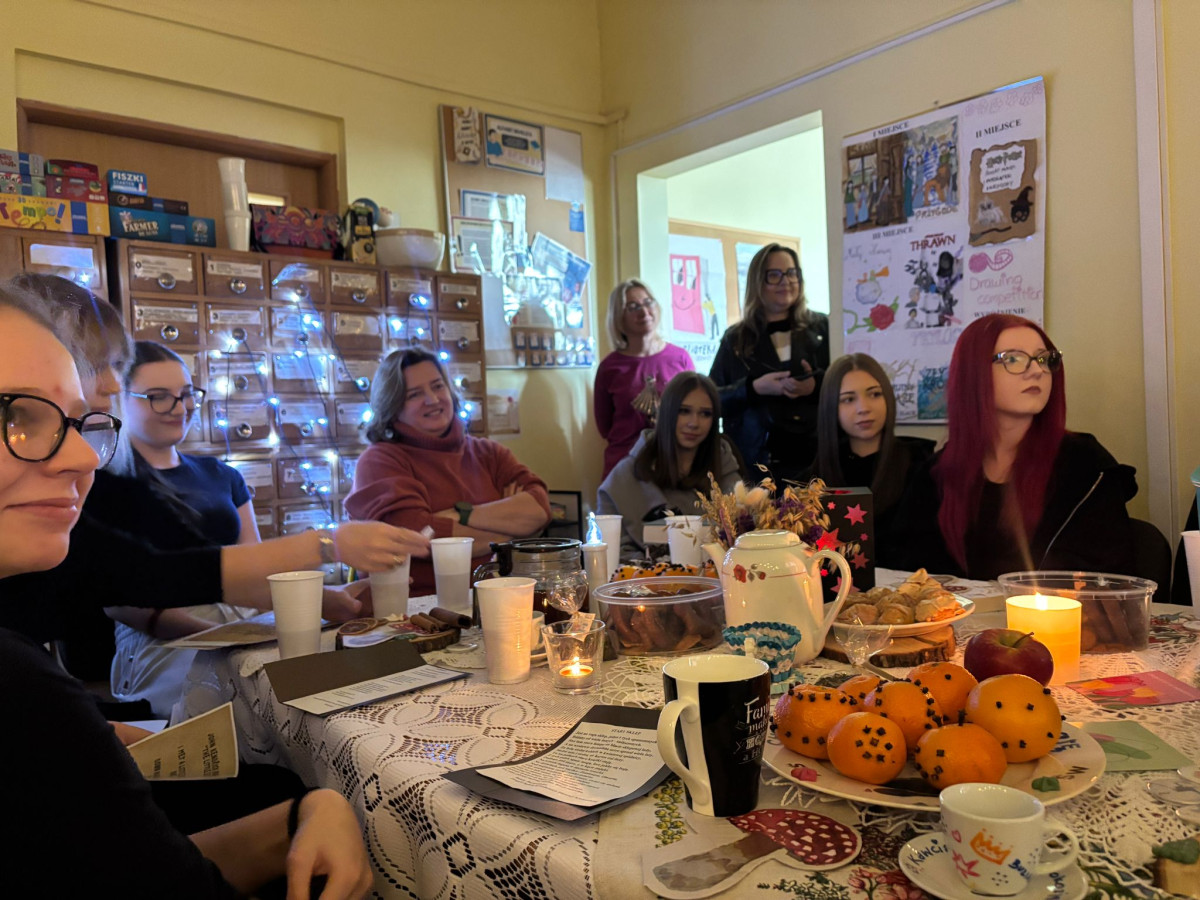Spotkaniu towarzyszył poczęstunek, nastrojowa muzyka oraz długie, swobodne rozmowy. Wieczorek stał się przestrzenią sprzyjającą budowaniu relacji, wymianie myśli i integracji społeczności szkolnej.